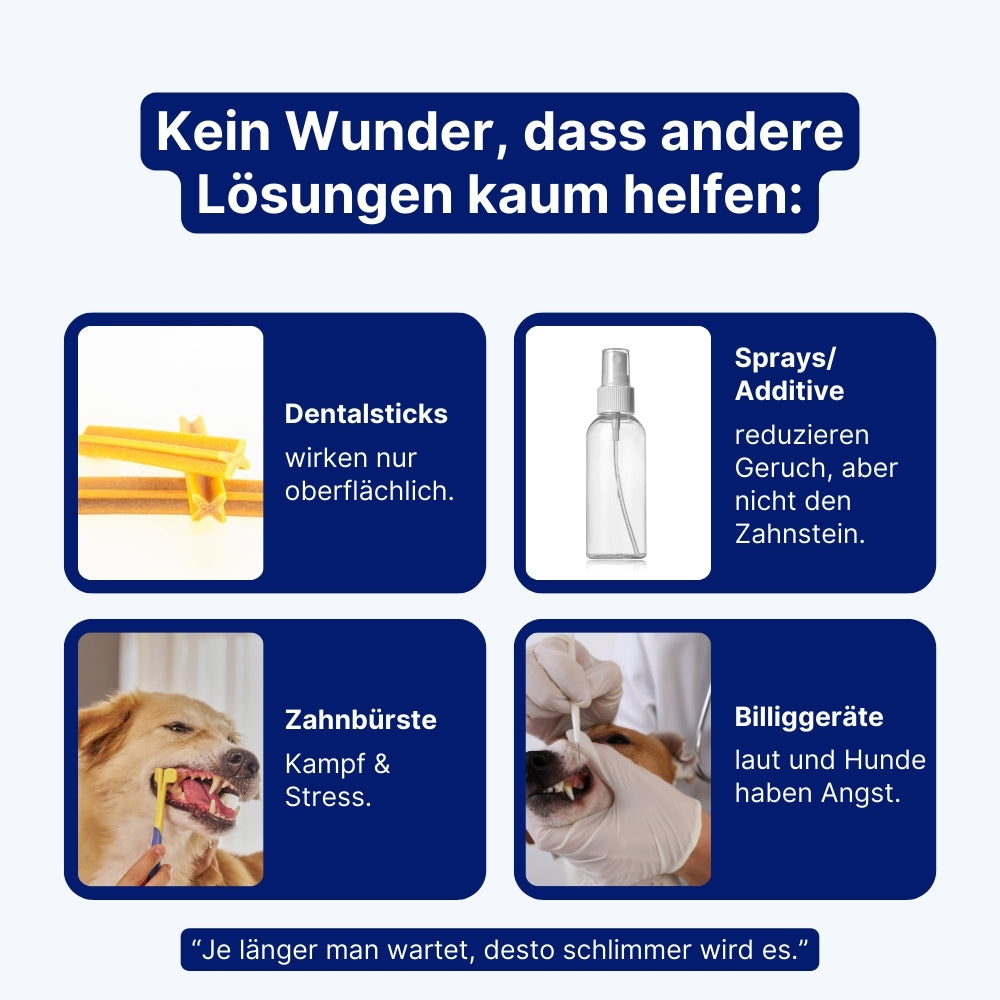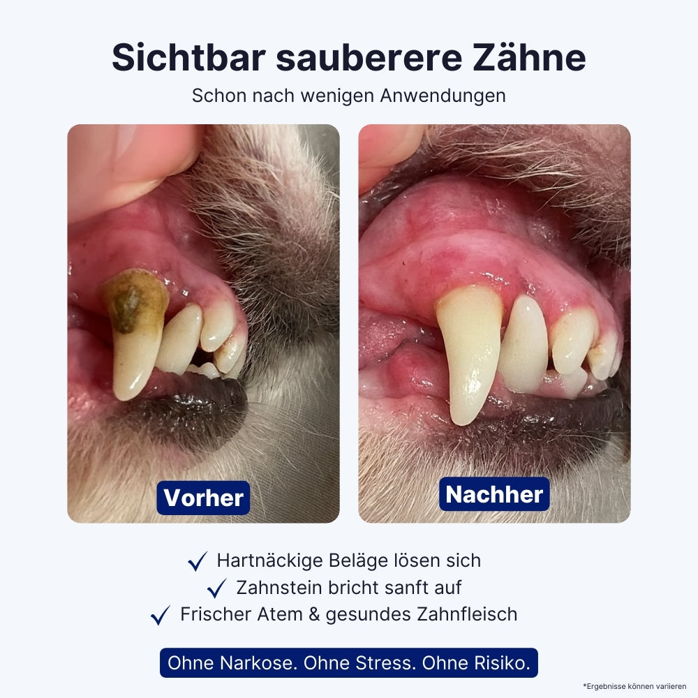 Du erreichst eine tierarztähnliche Reinigung, aber ohne Narkoserisiko und ohne die 600–1.200 €-Rechnung.