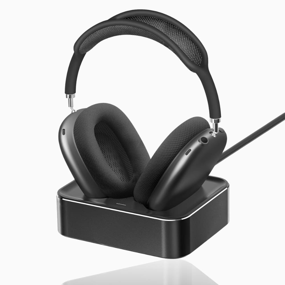 Die EchoBeats Max™ Charging Base lädt deine Kopfhörer automatisch per Magnetkontakt, schont den Akku und hält deinen Arbeitsplatz aufgeräumt.