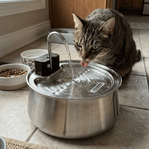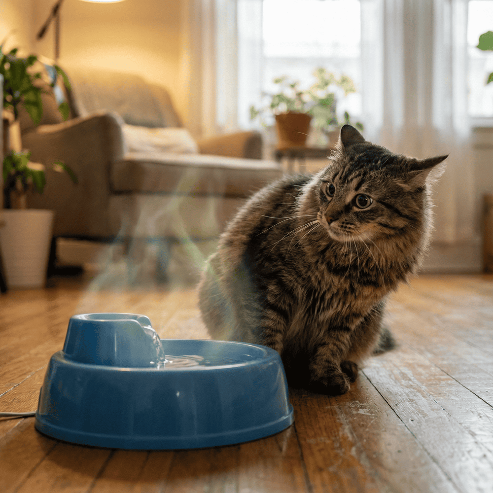 Dazu kommt das größte Problem: Stressquellen, die Menschen nicht bemerken. Ein vibrierendes Kabel. Ein unsicherer Stand. Ein chemischer Geruch. Alles kleine, aber entscheidende Gründe, warum deine Katze den Brunnen meidet.