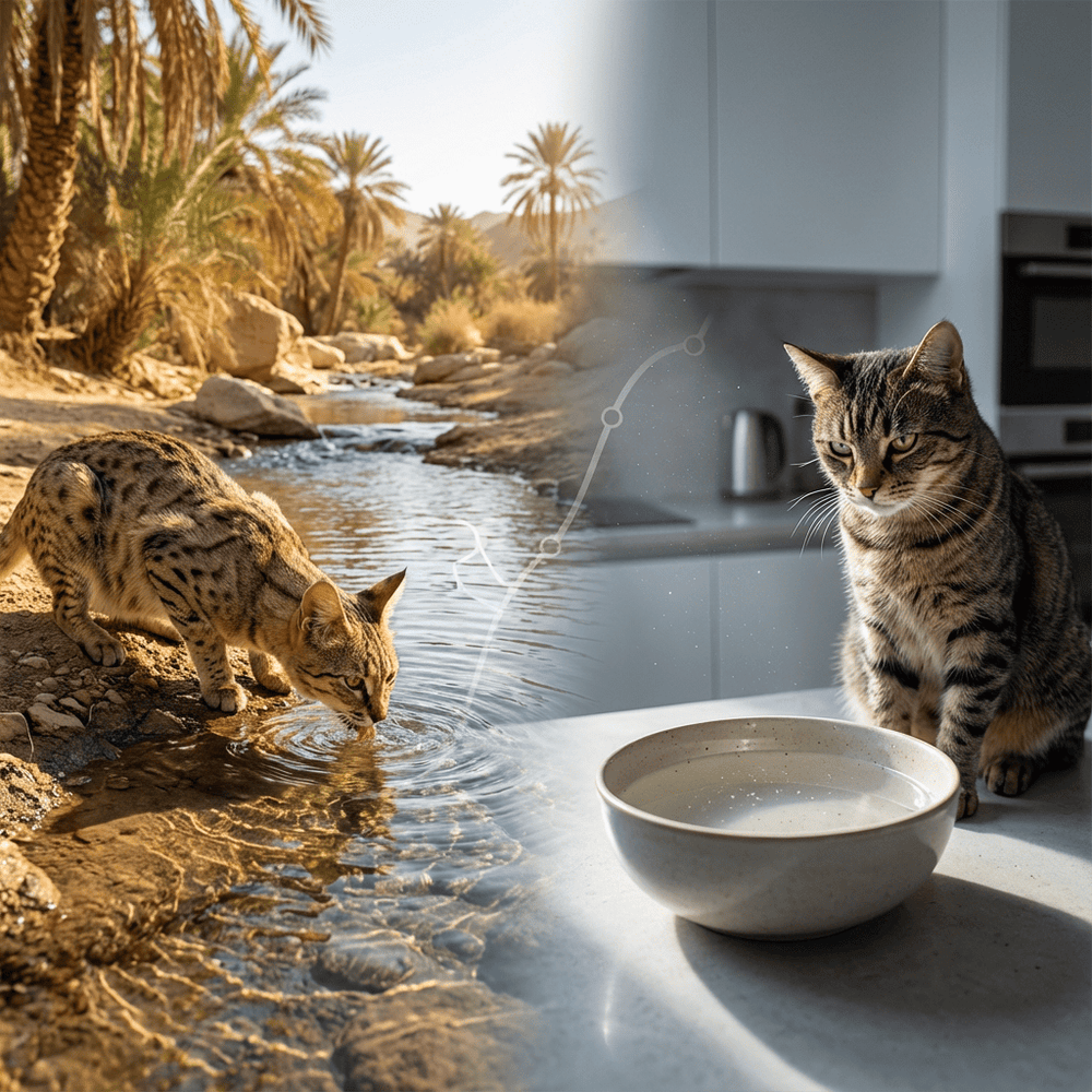 Die Wüsten-DNA deiner Katze: Warum stehendes Wasser für sie Gefahr bedeutet.